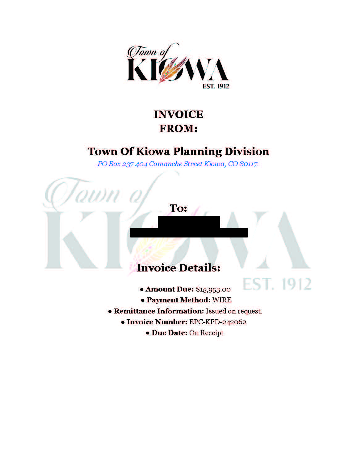 It has come to the Town’s attention that a local business owner received a fraudulent email earlier this week that appeared to come from planning.townofkiowa@usa.com.